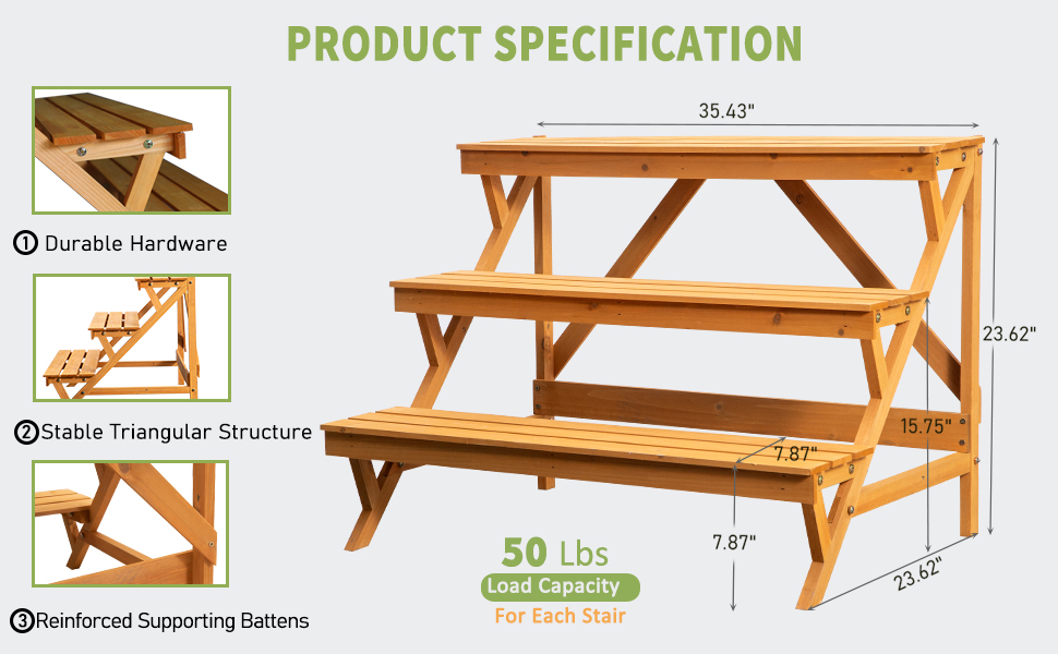 Amazon Com 3 Tier Wood Plant Stand Indoor Outdoor Ladder Multi Tiered Plant Holder Stand Wooden Large Plant Stands Display Storage Shelf 35 43 23 62 23 62 3 Layered Step Plant Rack Stair Plant Stand Patio